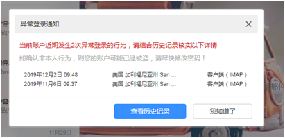 或點擊“查看”企業(yè)郵箱收到異地登錄提醒